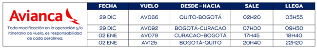 • BOLETO AÉREO QUITO-BOGOTÁ-CURACAO-BOGOTÁ-QUITO